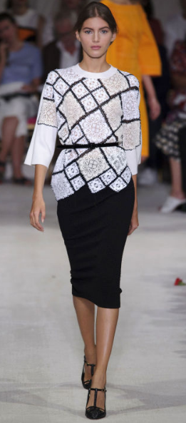 OSCAR DE LA RENTA Folded denim skirts, tucked in and ruffled eyelets, and lacy dresses are signatures for the Oscar de la Renta creative directors.