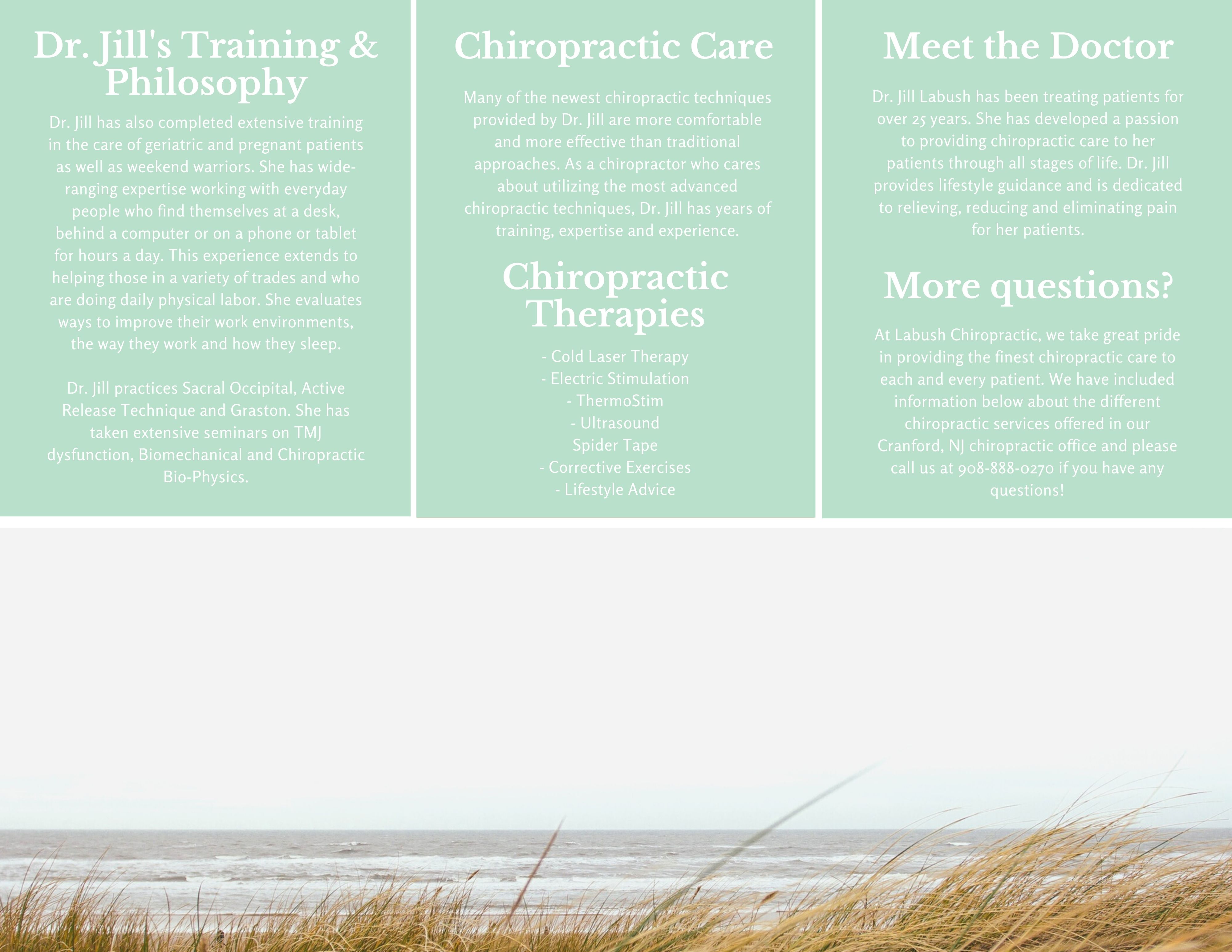 Labush Chiropractic provides excellent care to help patients reach and exceed their health goals. Assessing the patient as a whole, they address the main concern, and lead you into a lifestyle of being pain free.