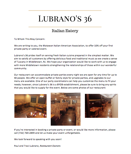 Previous Image Next Image Pitch Email (Italian-American Club) Pitch Email to Matawan Italian American Club